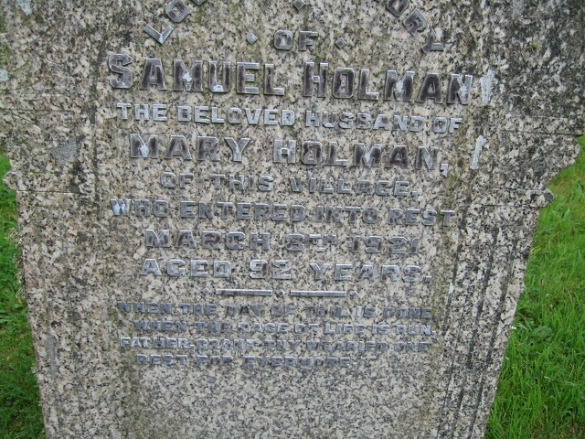 NAME: Holman Samuel BORN: 1829 DIED: 1921 AGE: 92 Husband of Mary Holman